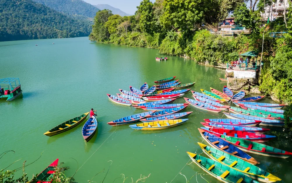 Upon reaching Pokhara, relax in the peaceful environment of the lakeside. The visitors will also enjoy the stunning views of sunrise from the Sarangkot viewpoint. Aside from this, get a chance to visit the natural attractions and landmarks along with boating in Phewa Lake.