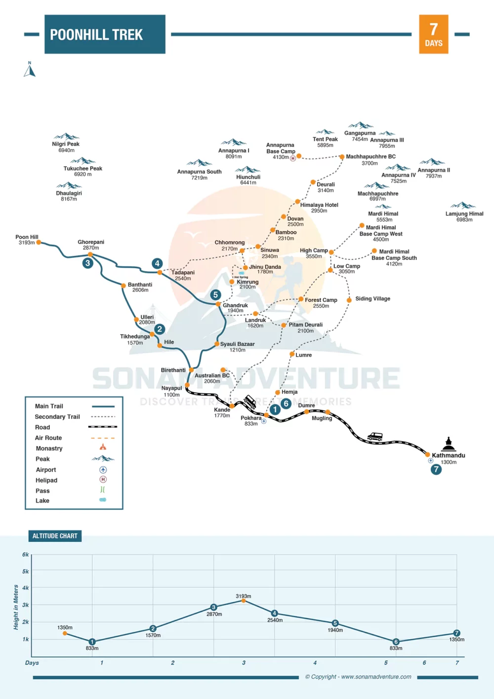 After accomplishing the 7 days poonhill journey. You may easily join another adventurous trek with the Sonam Adventure. We are always at your services. You have several trekking option with us